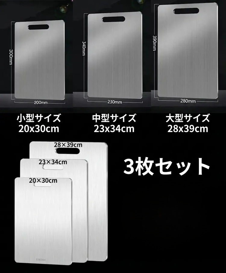 【カビ知らず】厚手304抗菌ステンレスまな板